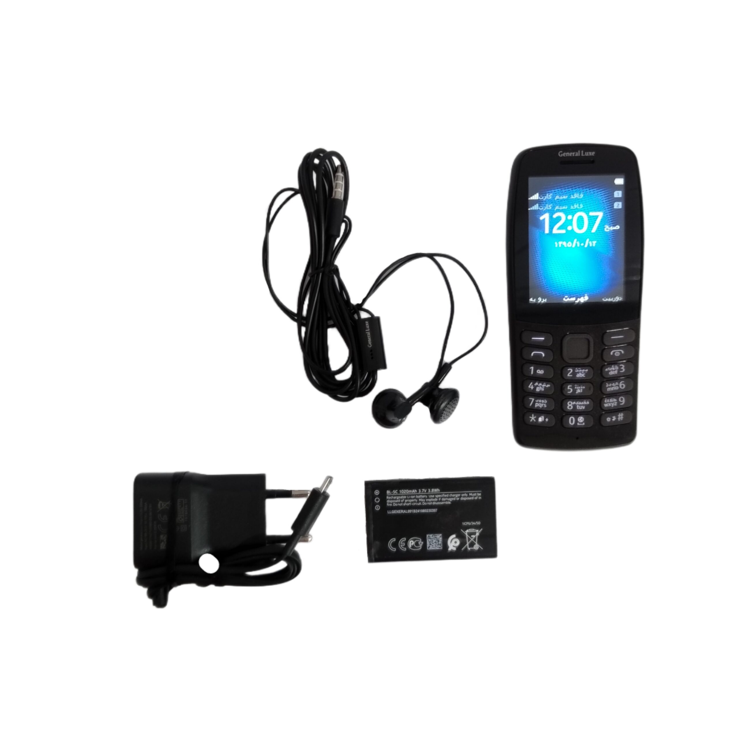 گوشی موبایل General Luxe 210 یک گوشی کلاسیک اقتصادی با طراحی ارگونومیک، باتری 1020 میلیآمپر، دو سیم کارت، صفحه نمایش 2.4 اینچی و دوربین VGA است.